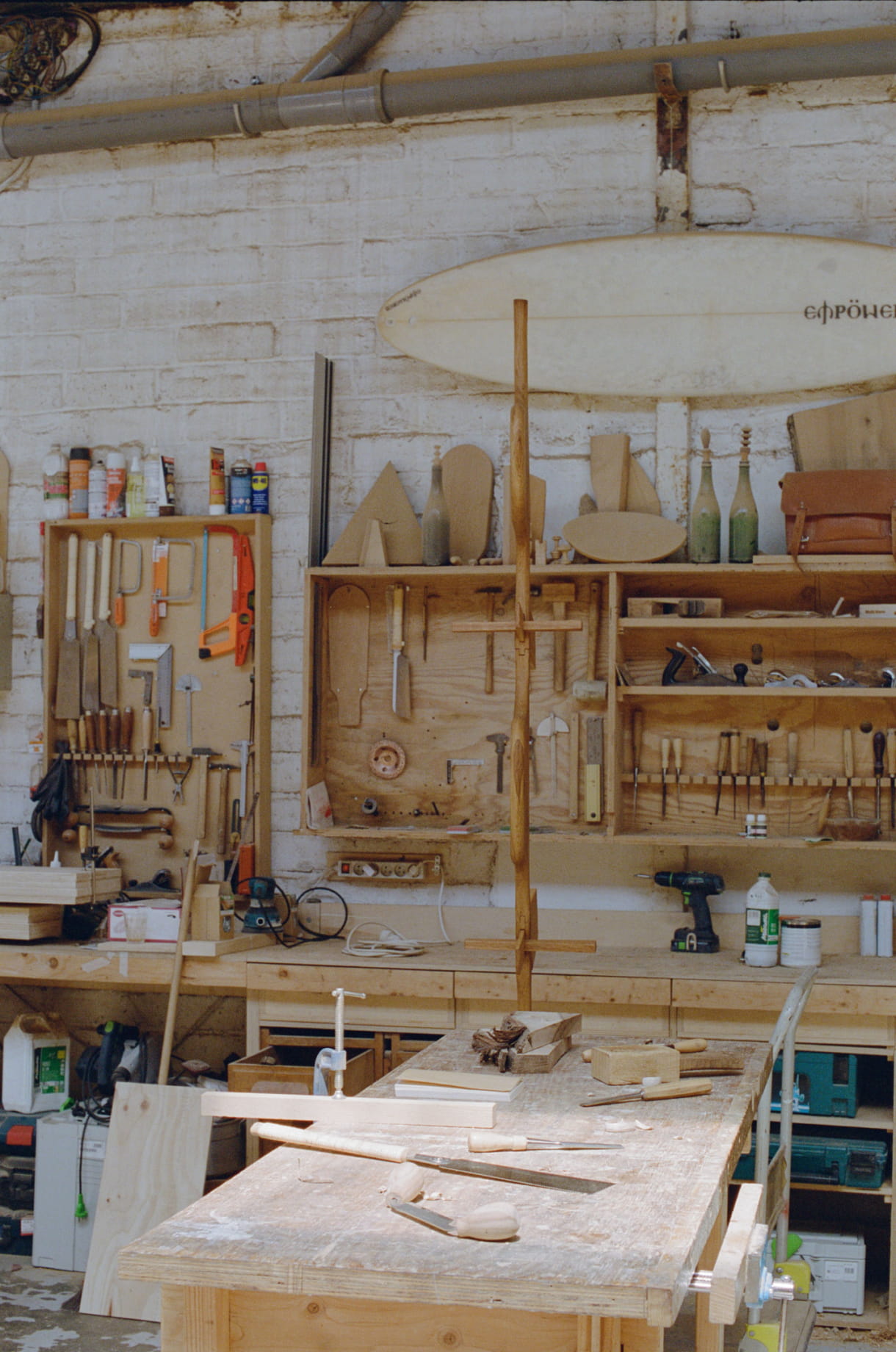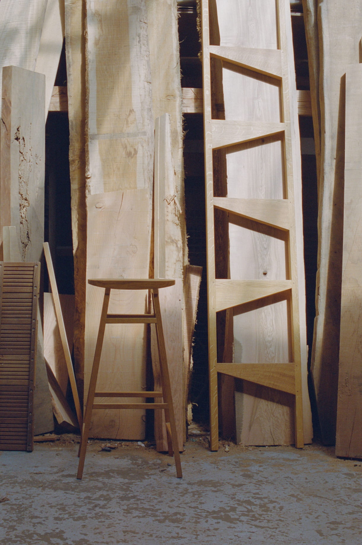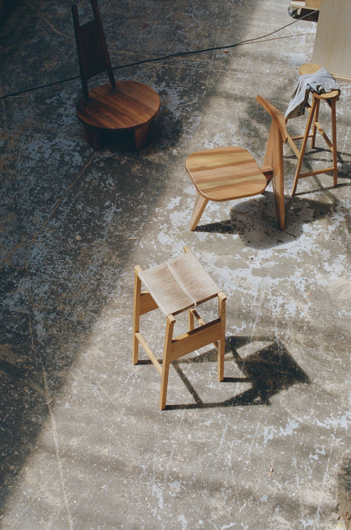 Zurzeit arbeite ich abwechselnd in zwei Werkstätten: eine liegt in Vitry-sur-Seine und die andere, die ich gerade fertigstelle, in Marseille. Das Atelier in Vitry befindet sich in einem großen Industriehangar, den ich mir mit anderen Handwerkern teile. Wir haben viel Platz und einen kompletten Maschinenpark für jegliche Art von Tischlerarbeiten – mir stehen also sehr gute Werkzeuge zur Verfügung, die Arbeit damit ist aber zwangsläufig etwas unpersönlich. In Marseille dagegen, wo ich mich in naher Zukunft niederlassen will, richte ich mir eine Atelierwohnung ein, in der ich leben und arbeiten kann. Es handelt sich hier um zwei ehemalige, ebenerdig liegende Geschäftsräume, die miteinander verbunden sind. Mir gefällt die Vorstellung, dass man jederzeit neue Ideen, Formen, ausprobieren kann, indem man einfach von einem Raum in den anderen geht.