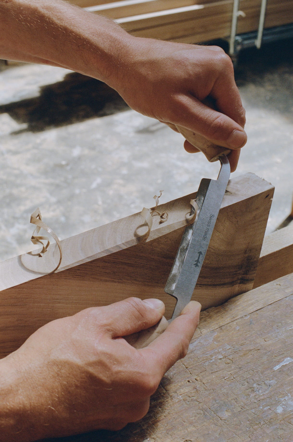 Ich schwanke zwischen Nussbaum und Kastanie. Beide eignen sich hervorragend zur Bearbeitung mit scharfen Werkzeugen. Es sind Weichhölzer, die beim Hobeln wunderschöne Späne hinterlassen. Natürlich gefallen sie mir auch wegen ihrer Flammenzeichnung und den sich daraus ergebenden Farbnuancen, was besonders auf Nussbaumholz zutrifft. Wenn ich noch eine dritte Holzart hinzufügen darf, dann die Libanon-Zeder. Diese Bäume können sehr breit werden, haben ein sehr weiches aromatisches Holz und einen sehr süßlichen Geruch. Ich habe jedes Mal, wenn ich dieses Holz bearbeite, das Gefühl, ein Gebäckstück aufzuschneiden.