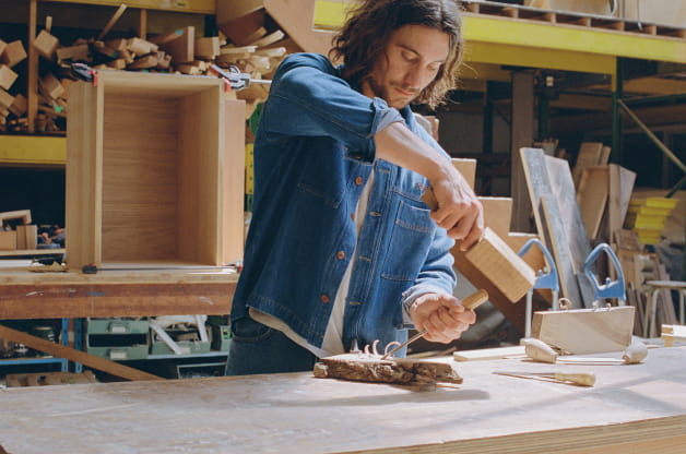 Ich habe mein Architekturstudium in Straßburg begonnen und in La Villette beendet. Meinen Abschluss habe ich 2015 gemacht. Kurz darauf hörte ich durch eine zufällige Begegnung von der Ausbildung zum Kunsttischler an der École d'Ameublement de Paris. Da ich schon immer mit meinen eigenen Händen arbeiten wollte, meldete ich mich für diese duale Ausbildung an und begann, bei Antonis Cardew zu lernen. So entdeckte ich die Werkstattarbeit, das Holz... Eine Welt, in der ich mich sofort wohl fühlte und entfalten konnte.