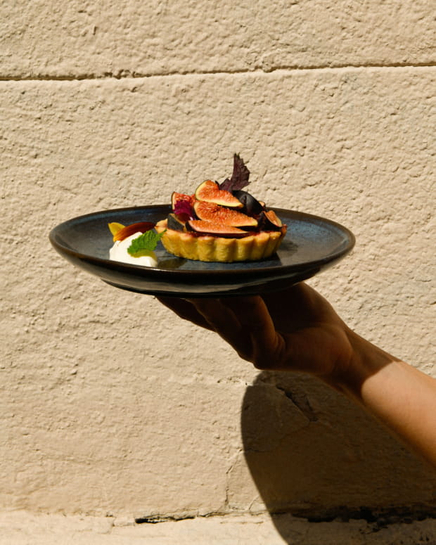 So biete ich für den Spätsommer gerne lebhafte und sonnige Gerichte an, wie etwa eine Kombination aus Zucchini-Tagliatelle, Ziegenkäse-Brousse, Bottarga und frischen Kräutern oder ein Fisch-Crudo an Jus oder Granité von Limette und Wassermelone. Ich würde den Sessùn-Gästen auch gerne einen in Weinblättern gekochten Reis kredenzen. Und ich freue mich schon auf die Verarbeitung von Pilzen, die im Laufe des Septembers eintreffen werden. Dann könnten sich Gerichte auf der Karte finden, die beispielsweise Shiitake, Portulak, Dinkel und Birnenpickles kombinieren. Was die Desserts anbelangt, werde ich vor allem auf Früchte setzen. Ich werde sicher oft zarte Tartes oder leichte Desserts anbieten, die frischen Quark, etwas Knusprigkeit und Ofenfrüchte kombinieren.