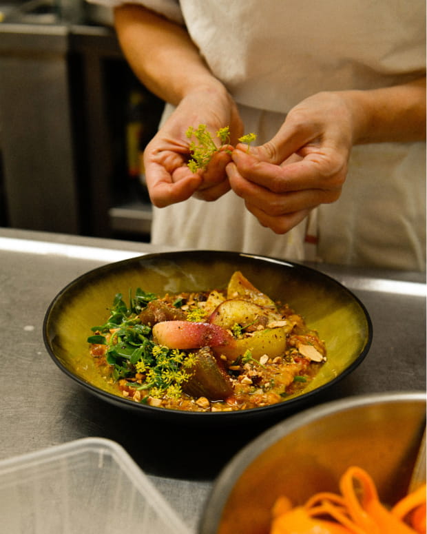 Das ortsungebundene Arbeiten ist eine Art zu arbeiten, die sich in den letzten Jahren sehr stark entwickelt hat. Für mich war es eine großartige Gelegenheit! Diese Art für die Arbeit herumzureisen, ermöglicht ehrliche Begegnungen mit Produzenten, eine Auseinandersetzung mit der Position und der Rolle von Chefköch*innen in den Gastronomiebetrieben und einen freien Willen, der zwangsläufig auch in den Gerichten zum Ausdruck kommt. Außerdem wird dadurch etwas frischer Wind eingebracht und man gewinnt mehr Abstand zu seiner eigenen Arbeit. Oder um es anders auszudrücken: das ortsgebundene Arbeiten verleiht sowohl den Chefköch*innen als auch den Restaurants eine neue Dynamik, die ständig in Bewegung ist und sich immer weiterentwickelt. Diese Vorstellung gefällt mir. Die Art und Weise, wie wir konsumieren und uns ernähren, hat sich stark verändert und die Entstehung dieses neuen Konzepts des Kochens geht mit einer Rückkehr zum Handwerk und zum Rohprodukt einher.