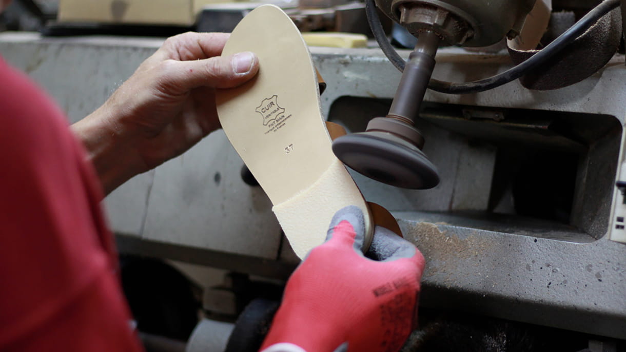 Das Leder wird anschließend an unseren exklusiven Partner hier in Marseille geliefert, wo es zugeschnitten und verarbeitet wird. Wir arbeiten seit jeher mit demselben Sandalenhersteller zusammen, einem Familienbetrieb, der vom Vater auf den Sohn übertragen wurde. Ein halbes Dutzend Angestellte leisten hier täglich echte handwerkliche Arbeit. Alle Schuhe sind handgefertigt, was jedes Paar zu einem Unikat macht, entstanden aus einer Wertschöpfungskette, die Menschlichkeit, Authentizität und Savoir-faire umfasst.