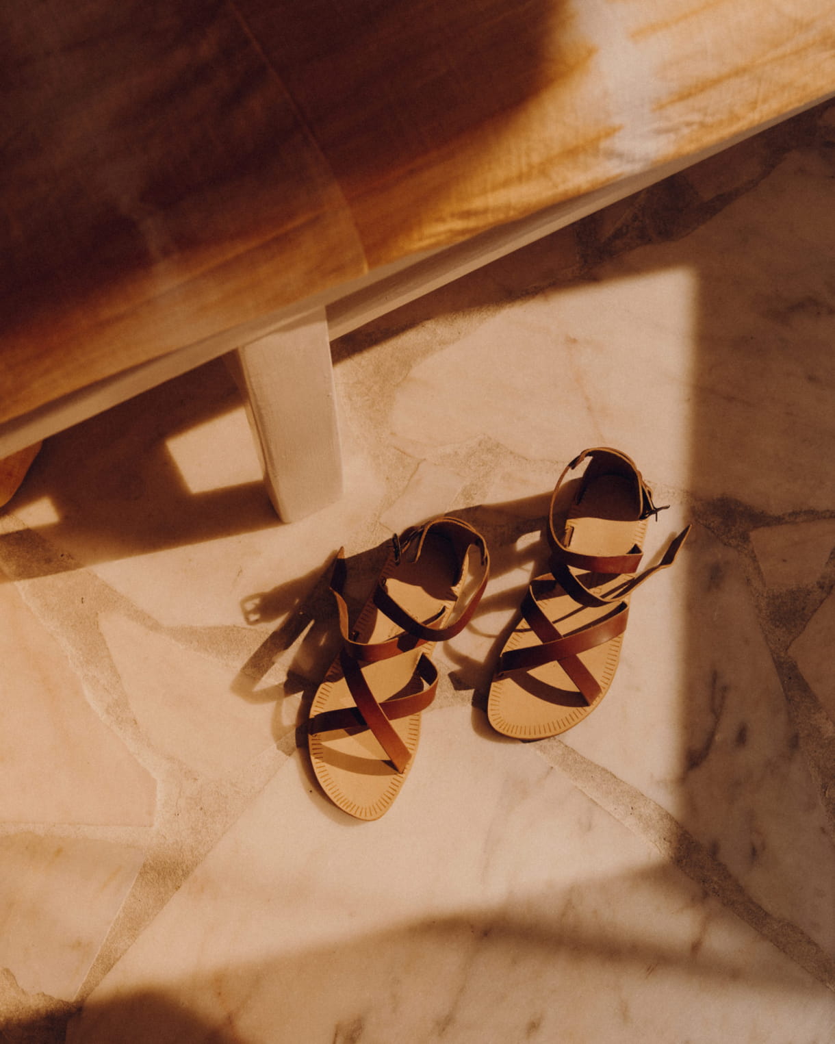 Die Römersandalen sind wie eine Metapher für einen einfachen, auf das Wesentliche reduzierten Lebensstil.